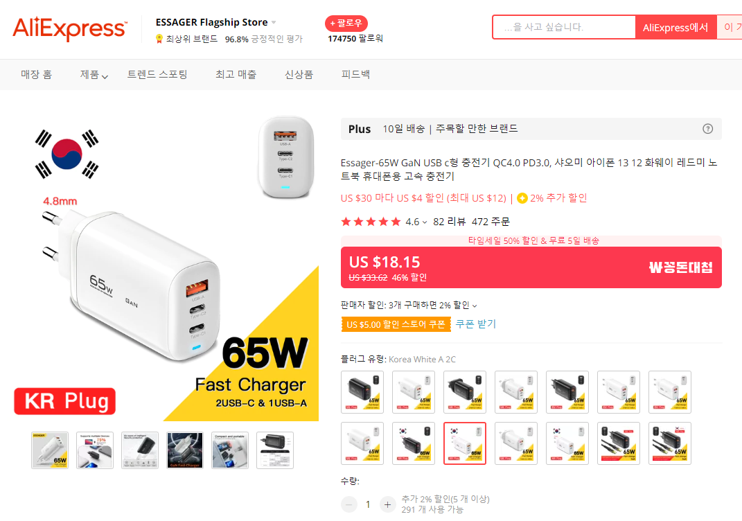 65W 한국형 충전기는 가성비의 알리익스프레스 구매 추천!!