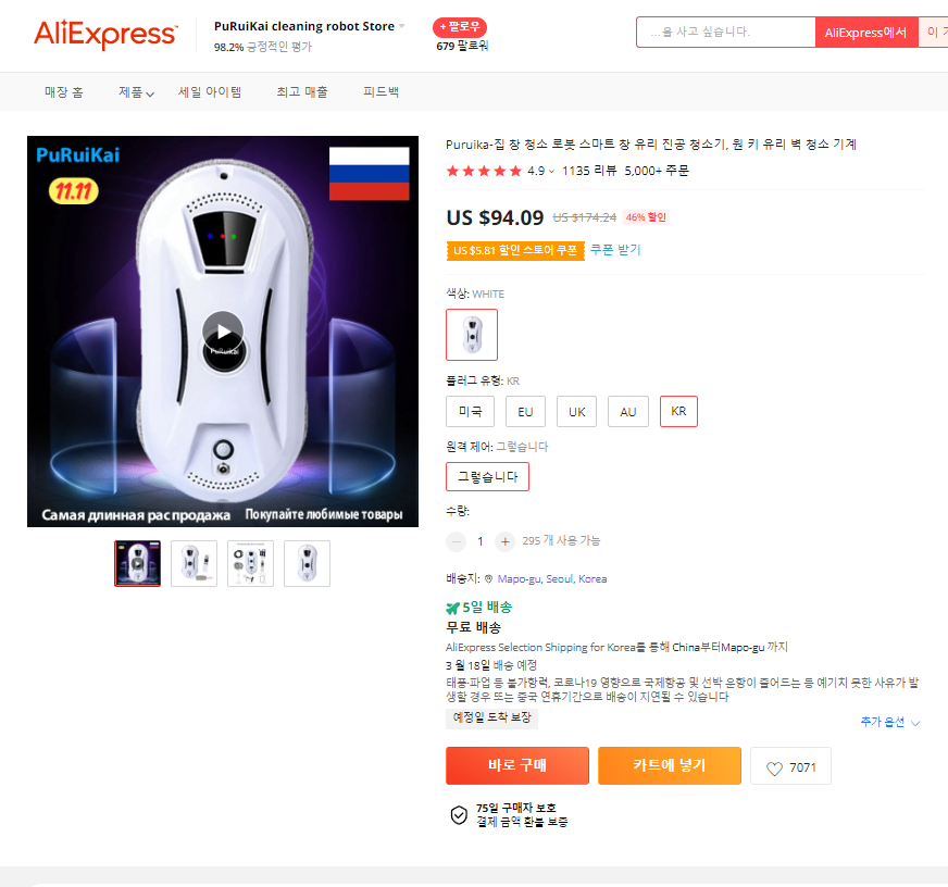 알리익스프레스 창문 로봇 청소기 최저가 바로가기 >>